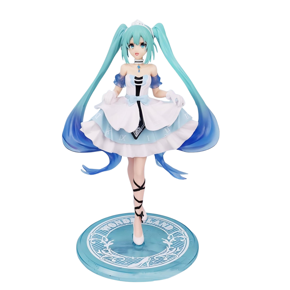 Fabricada pela Taito, modelo Wonderland, esta figure encantadora traz Hatsune Miku em uma versão inspirada na Cinderela. Com 20cm de altura e feita em PVC-ABS, é uma peça cheia de detalhes e qualidade.
